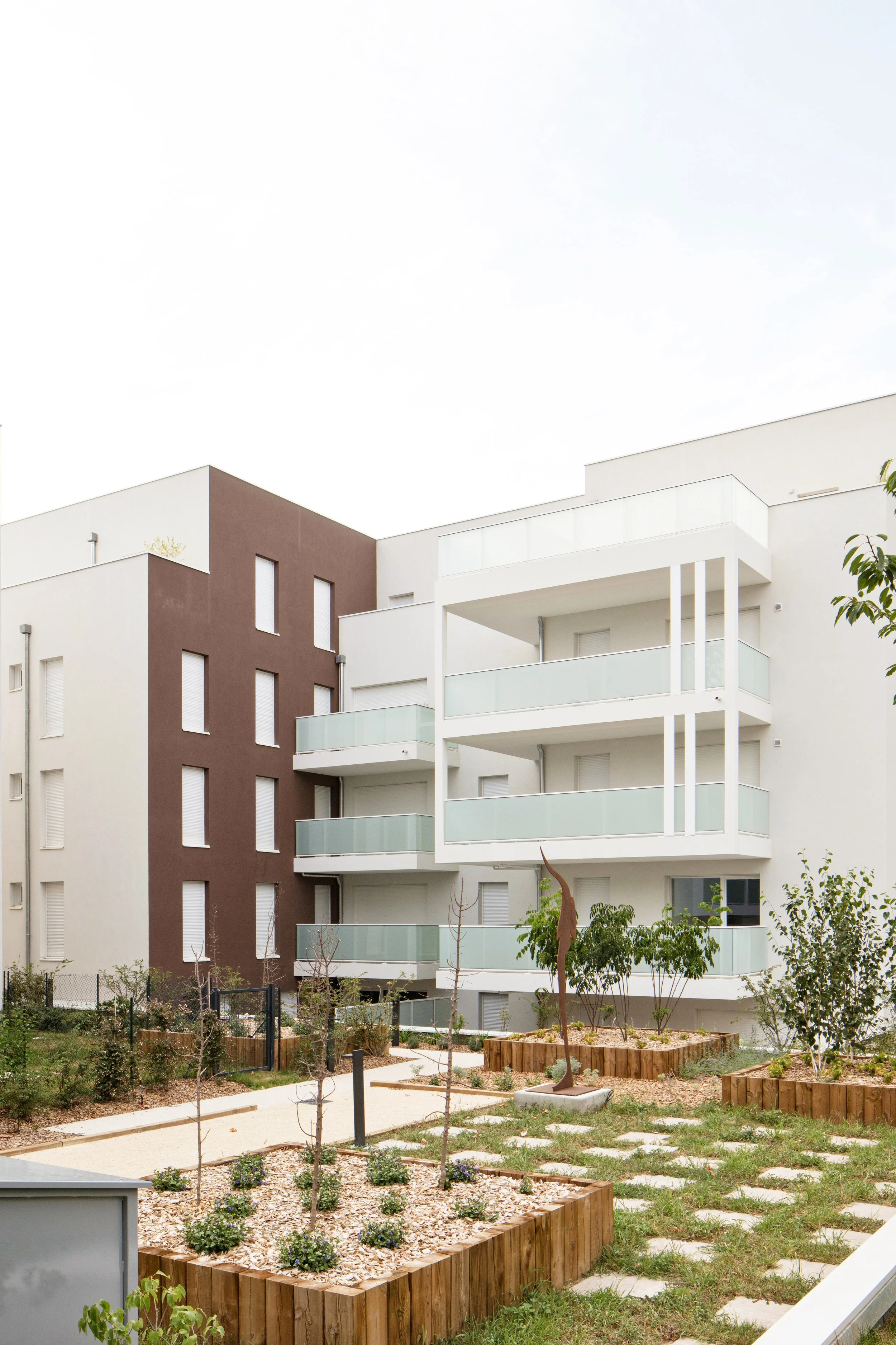 Le projet se situe sur un terrain avec topographie marquée et un espace vert Boisé classé. Il est composé de deux bâtiments, dont la volumétrie est sculptée par un jeu de loggias, et de terrasses ainsi qu’une alternance de garde-corps pleins et vides brouillant la lecture des niveaux en façades. Les volumes sont fractionnés grâce à la diversification des plans et à la création de grandes terrasses aux deux derniers étages. Les deux entités du projet sont liées par leurs architectures et leurs matériaux de façades qui permettent de donner une cohérence à l’ensemble.